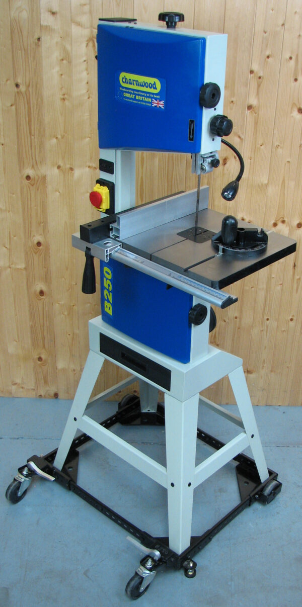 Charnwood-B250P-10″ Premium-Quality-Bandsaw Package complete on stand with W522 wheels plus 1/2″ &1/4″ blades
