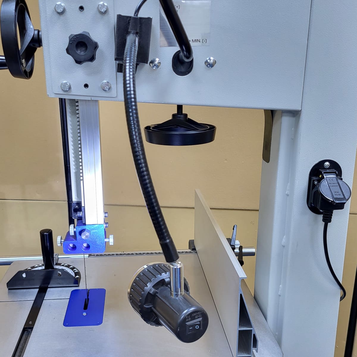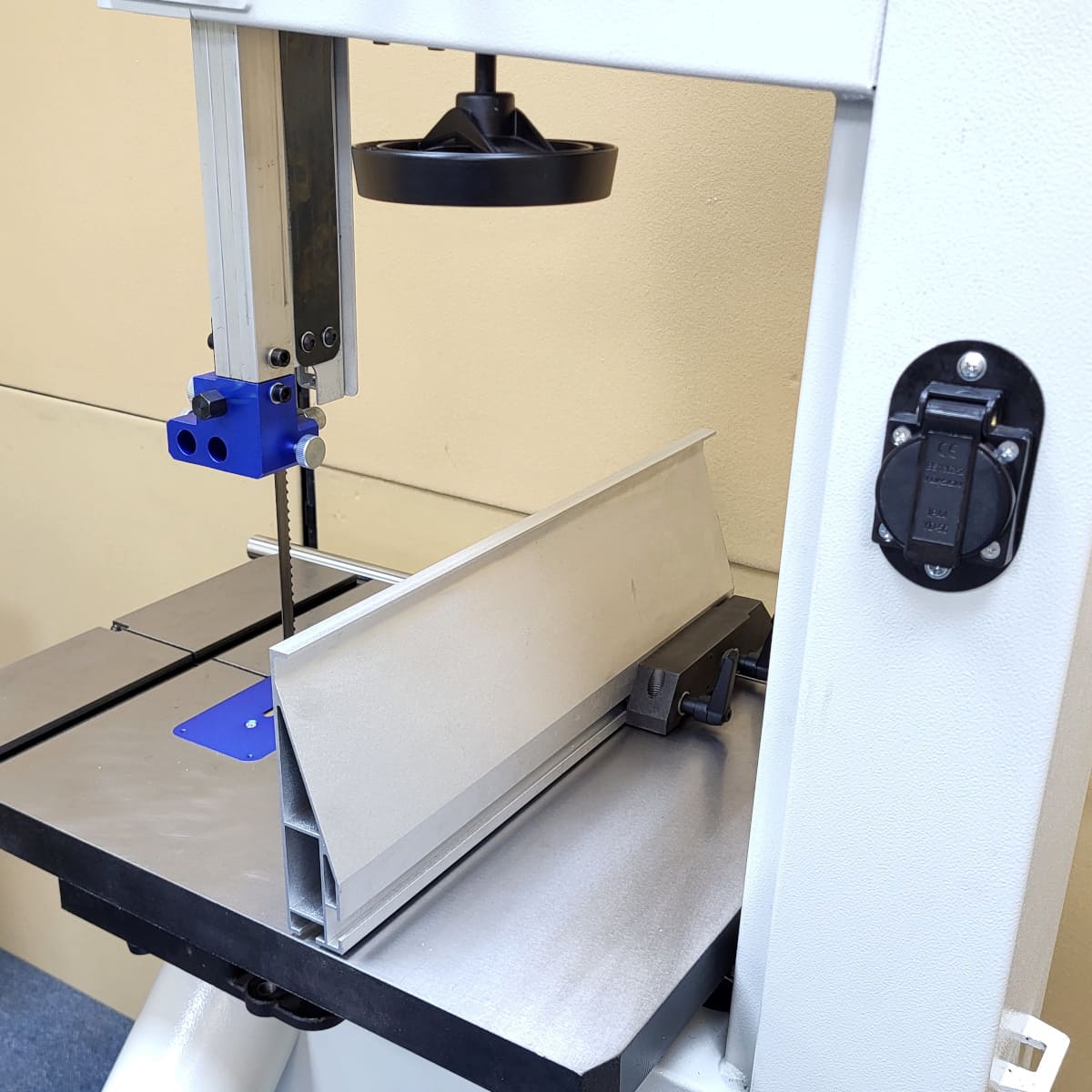 A bandsaw with a solid one-piece frame constructed using a heavy gauge steel. Powered by an 1800w induction motor and able to make re-saw cuts of up to 330mm deep. Twin extraction ports keep the inside of the cabinet free of dust.
