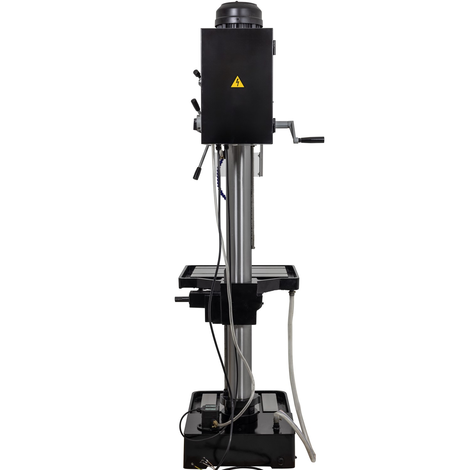 - An interlocking safety switch prevents the drill from running when headstock covers are opened.