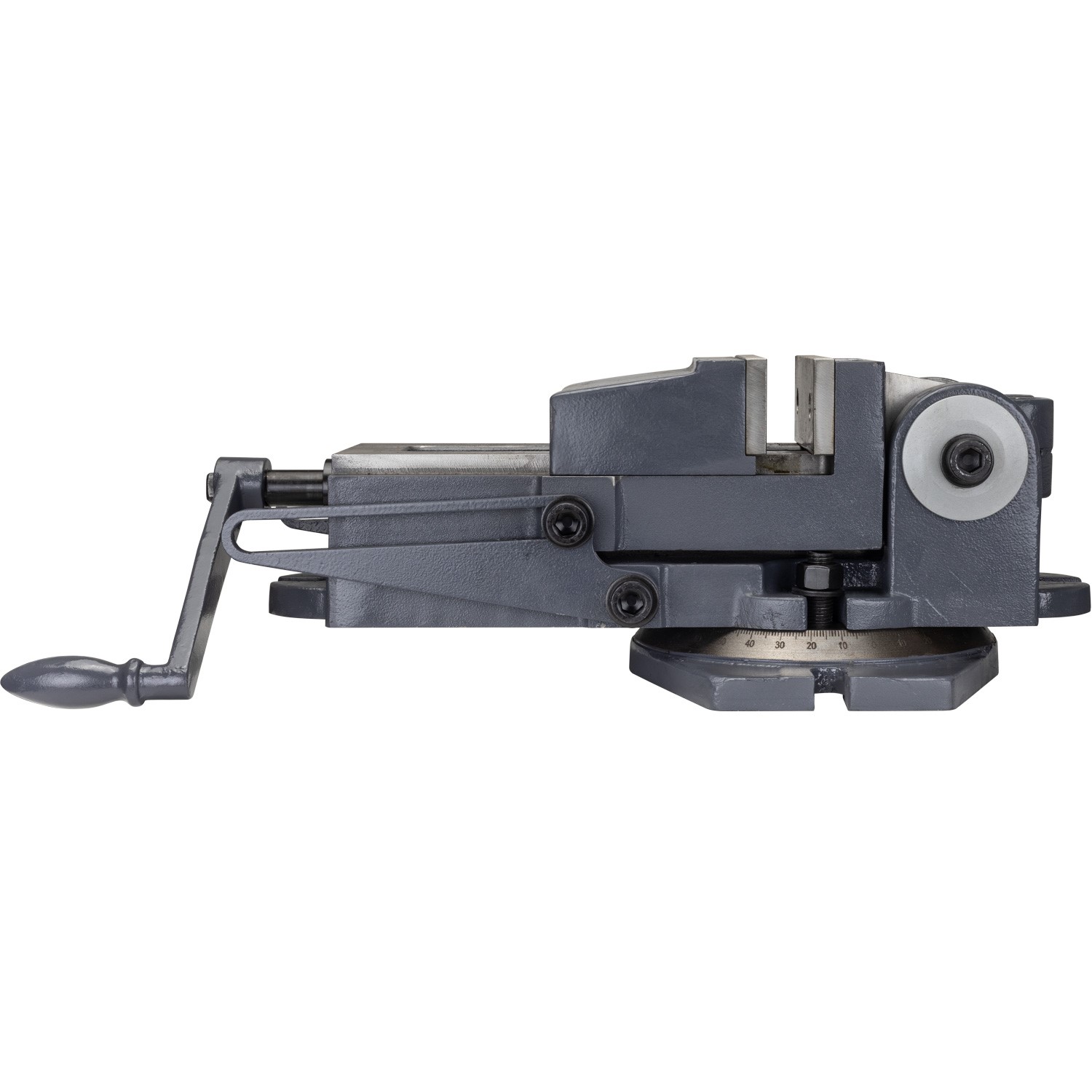 - Mounted on a durable swivel base that allows unrestricted 0° to 360° rotation of a workpiece to the desired angle without need to unclamp it.