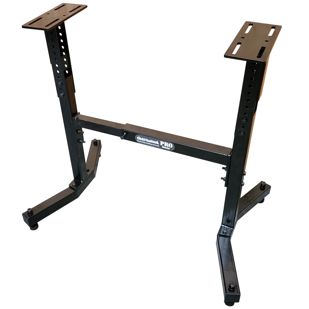 The width of the stand is fully adjustable allowing it to be compatible with many different makes and models of lathe. The two mounting platforms have a series of slotted holes for securely bolting the lathe to the stand.